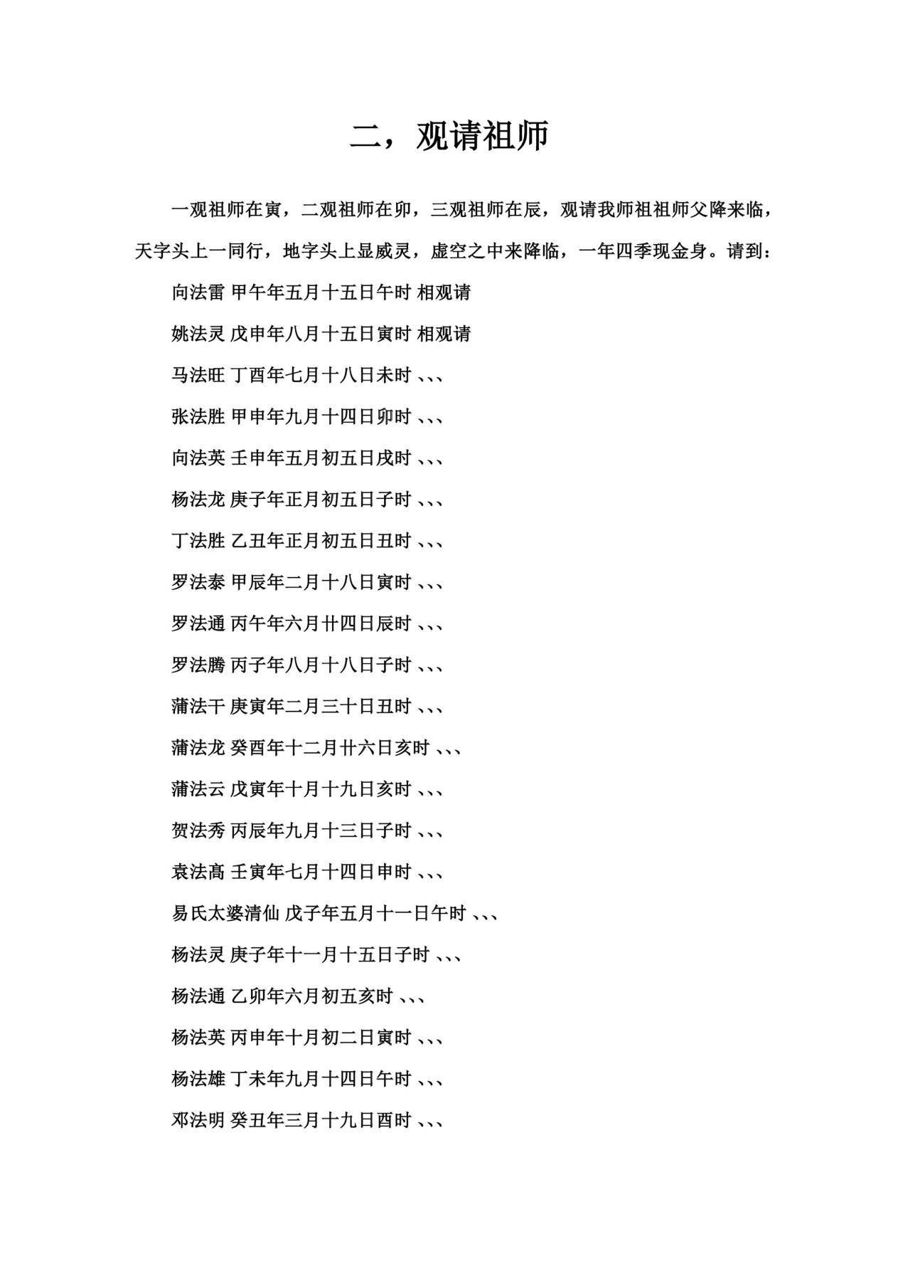 卄二,坛内扫邪法事