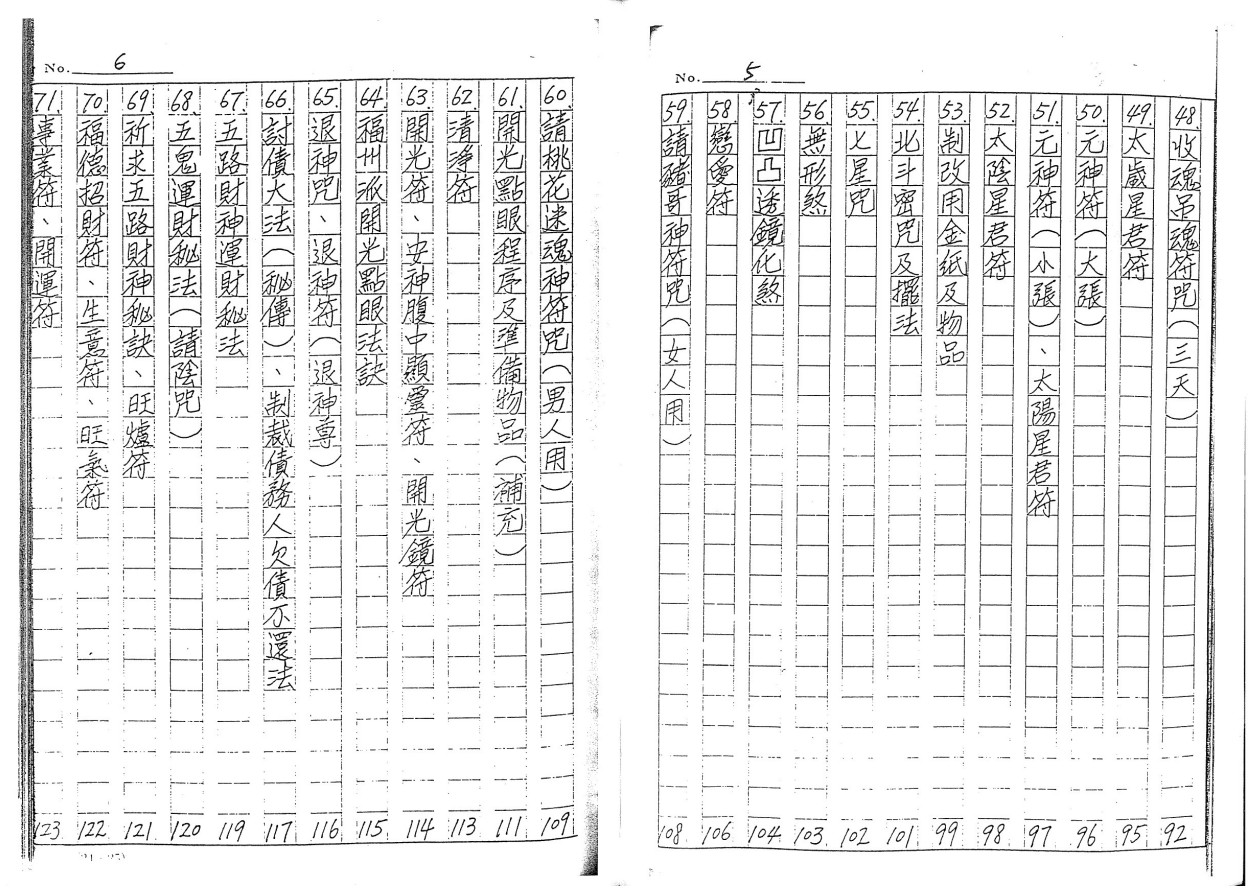 天师符秘法,咒语的定义,符式与功用,黄泉符,天罗地网符,出煞符,押煞符,刮毒符,解热符,藏魂符,隔路符,出外保身符,净符,盘古破邪符,元神光明符,杨公符,扣煞符,三煞符,火烧解秽符,阴身化尸符,化百煞符,求财如意符,上梁护宅神符,男女和合符,男女分开符,安公妈符,招魂符,五方符,断山符,旺坛符,破骨符,水符,地理勘察秘诀,解封犬咬伤法,新婚如意符,嫁娶新娘煞之破解,安神位求财秘法,过房书、书写格式,消灾改厄文书,论吊魂,和合诀,和合咒,和合符,北斗密咒及摆法,七星咒,无形煞,挖凸透镜化煞 ,福州派开光点眼法诀等等请购后细阅。。。