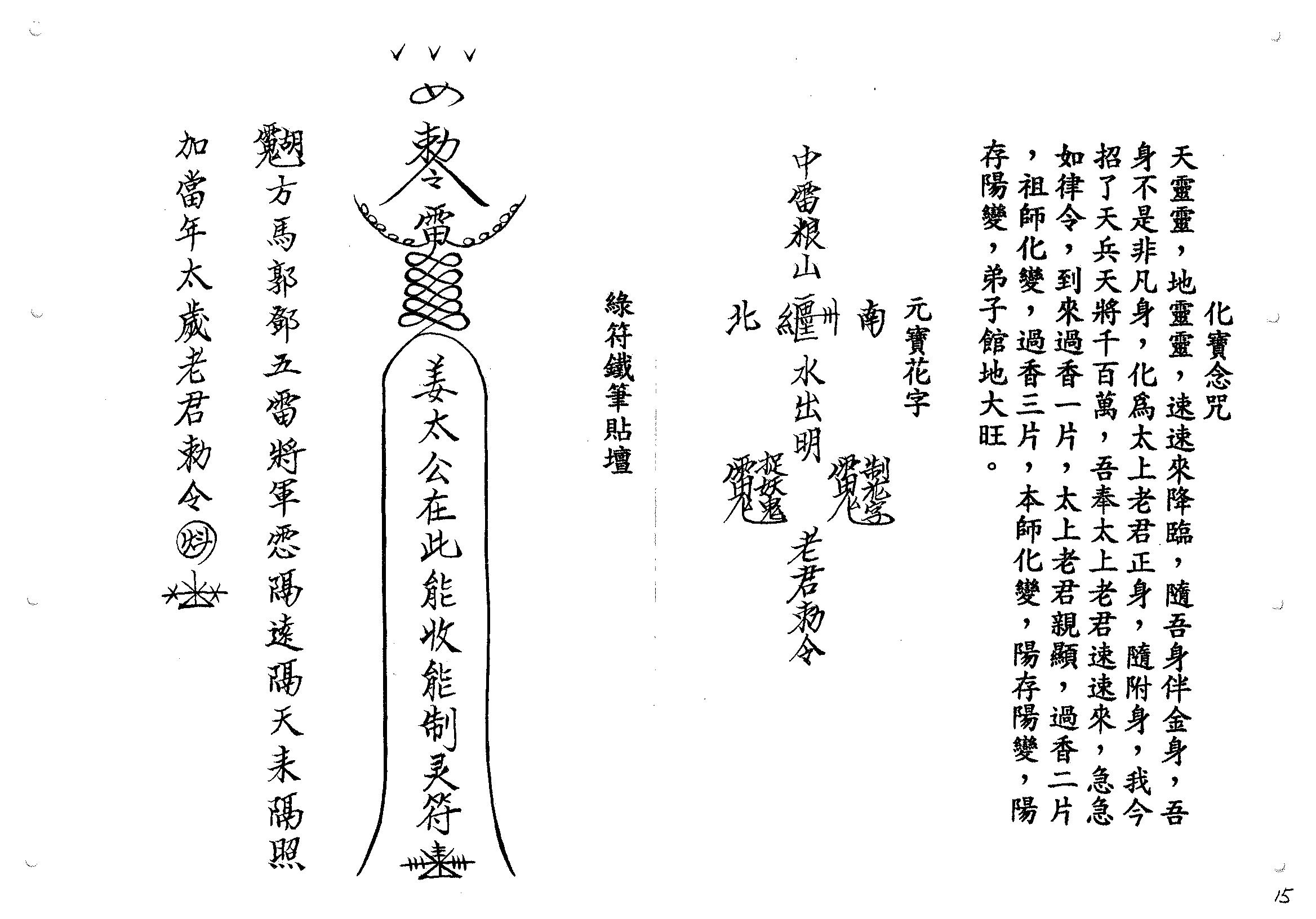 非常不错的法本,内容包括:制煞,治病表章,敕尺咒,敕镜咒,制煞咒,敕米,敕治病符咒,敕法扇咒,敕老君印,敕八卦印,七星步咒,合掌咒,扫邪咒,敕铁笔咒,敕斗法符咒,水碗咒,灭口符,守门符,制小人香,退烧法水,收本门弟子及他人法,追贼捉贼符,江湖救急赌钱花字,专制恶人花字,除邪消灾香,铁板咒诀,圣象开光咒,敕圣杯咒,止牙痛等等,还有大量内容请购后查看!!