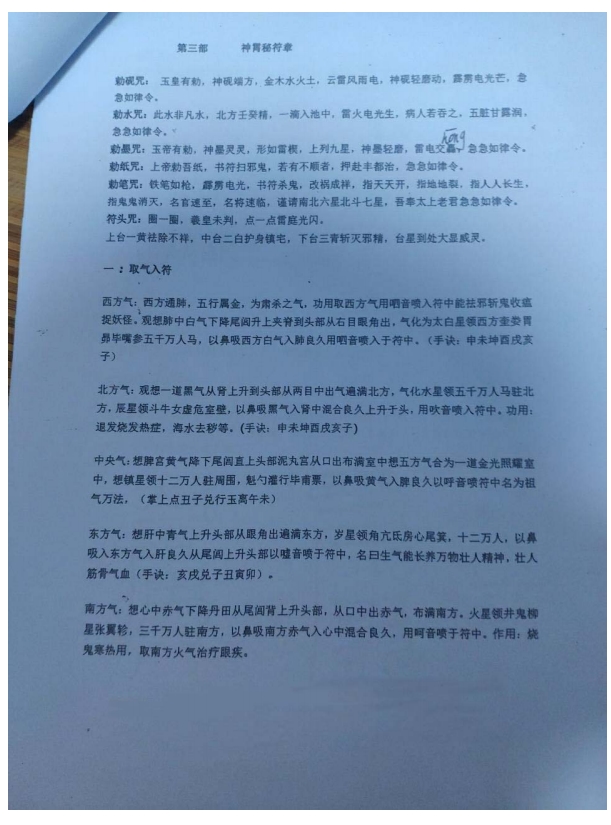 画符步骤、符的用法、仙老君总咒、驱邪缚魅法符一套。