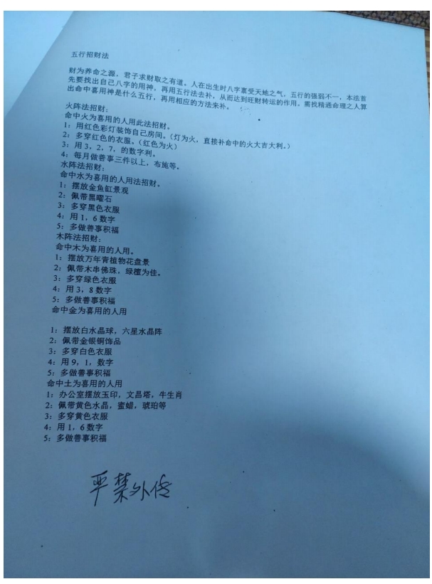 五行招财法。