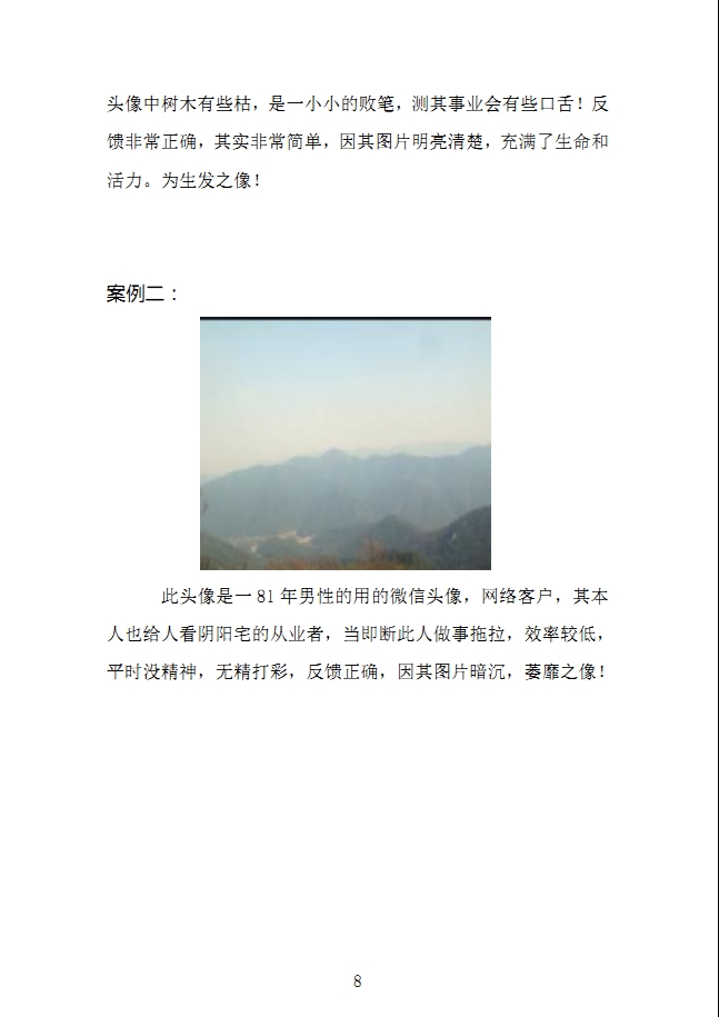 一个微信头像以及QQ头像显示一个人一生所有的信息信息量之广超越八字和奇门,可以预测各种信息,大到事业前程小到预测临时办事成败,婚姻恋爱微信头像铁口张口即来,图片断本人兄弟个数及姊妹个数是本人独创法门,断图片外遇桃花更是微信头像铁口断的特色,只要别的预测术有的预测功能微信头像都能轻松的预测到,这就是微信头像的神奇之处,本人完善了头像预测术也是预测届的一个大突破。