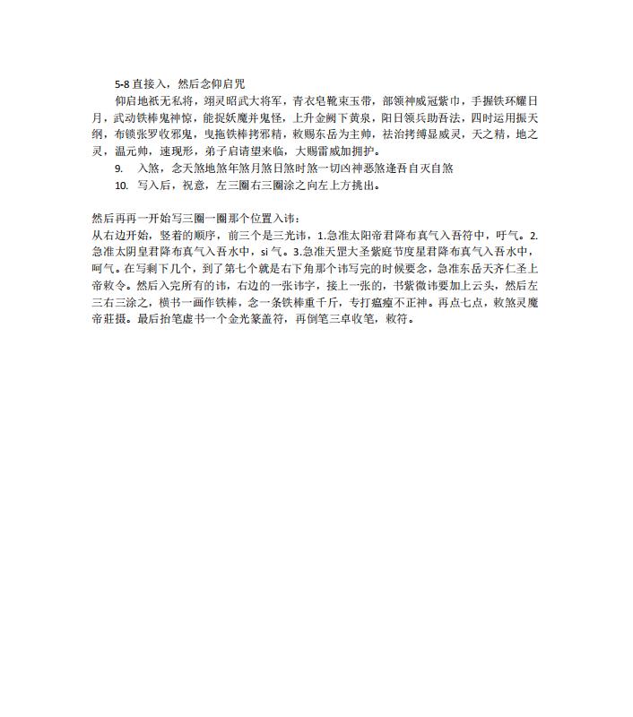 5.神霄玉帝斩邪雷火烧邪秘法。此法是拷邪之后拿来斩邪烧邪的,威力巨大,平时不要乱用,上天有好生之德,不要妄用此法。