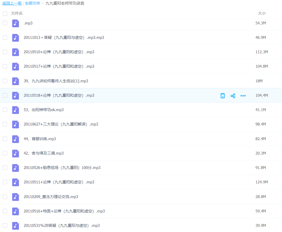 ┃ ┣━━20110526+胎息组场(九九重阳)100分.mp3 [91.8M]