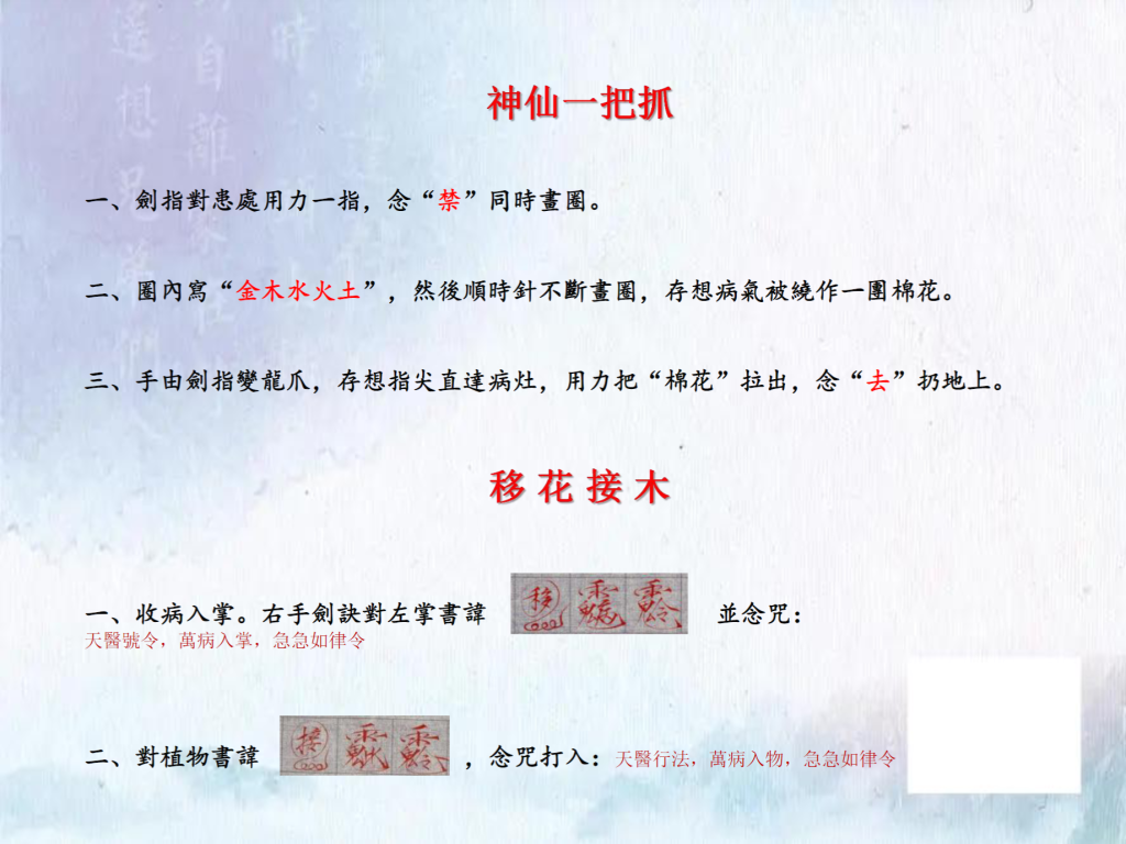 祝由之术,即通过移精变气,达到去除病痛之效果!要义在于接引某种能量导入人体,使人