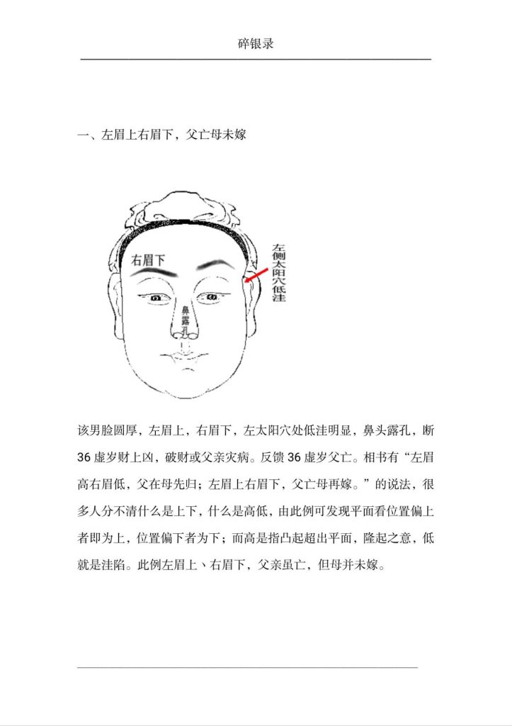 一、左眉上右眉下,父亡母未嫁