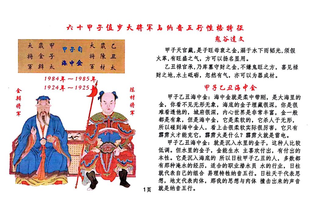 甲子旬值岁将大军与纳音行五性格特征