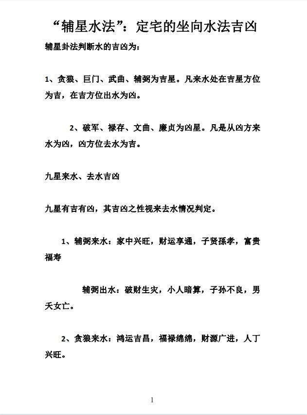 辅星水法”:定宅的坐向水法吉凶