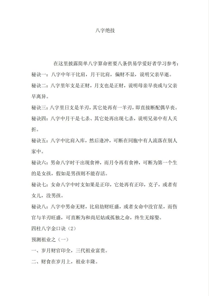 八字绝技算命诀窍篇144页电子版