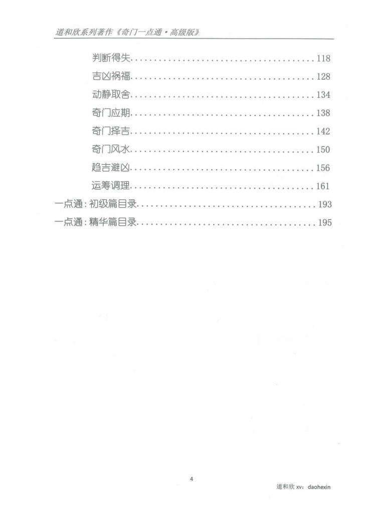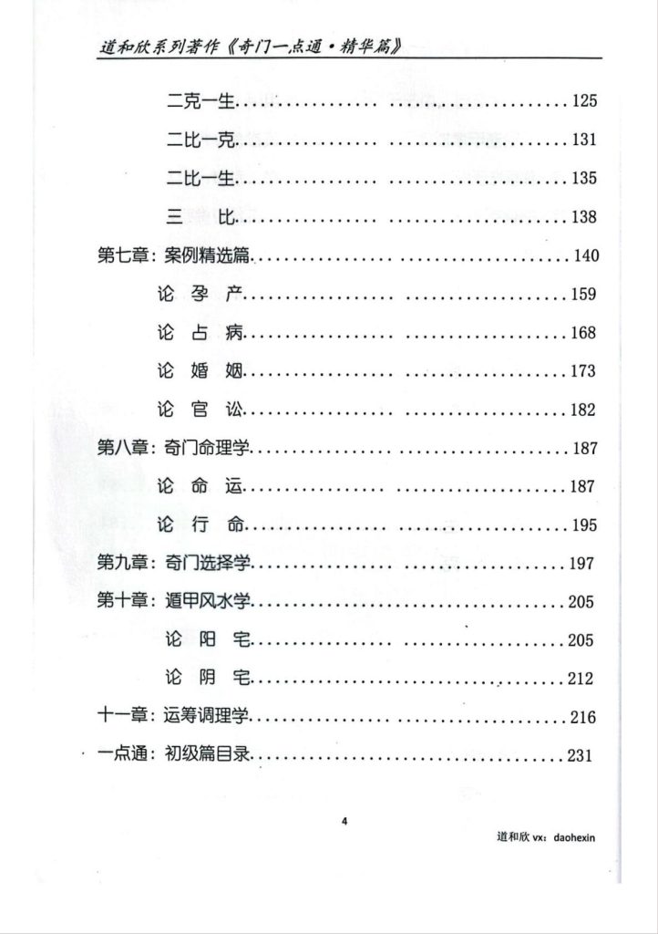 精华篇:包括内容最为广泛,环绕“解卦心法、案例选集、吉格凶格、择吉、风水、奇门运筹”等进行论述。其中‘断局心法’将符使法分十类,三十六格逐一详解,并进行延伸解读。择吉、风水、运筹章,是迈入高档篇的必要知识。更有对六十时的吉凶总结、行年本命的用法、天地盘的转换等。最后针对占求财、占怀孕、占胎产、占婚姻、占诉讼、占应期、占命理等进行单独论断。