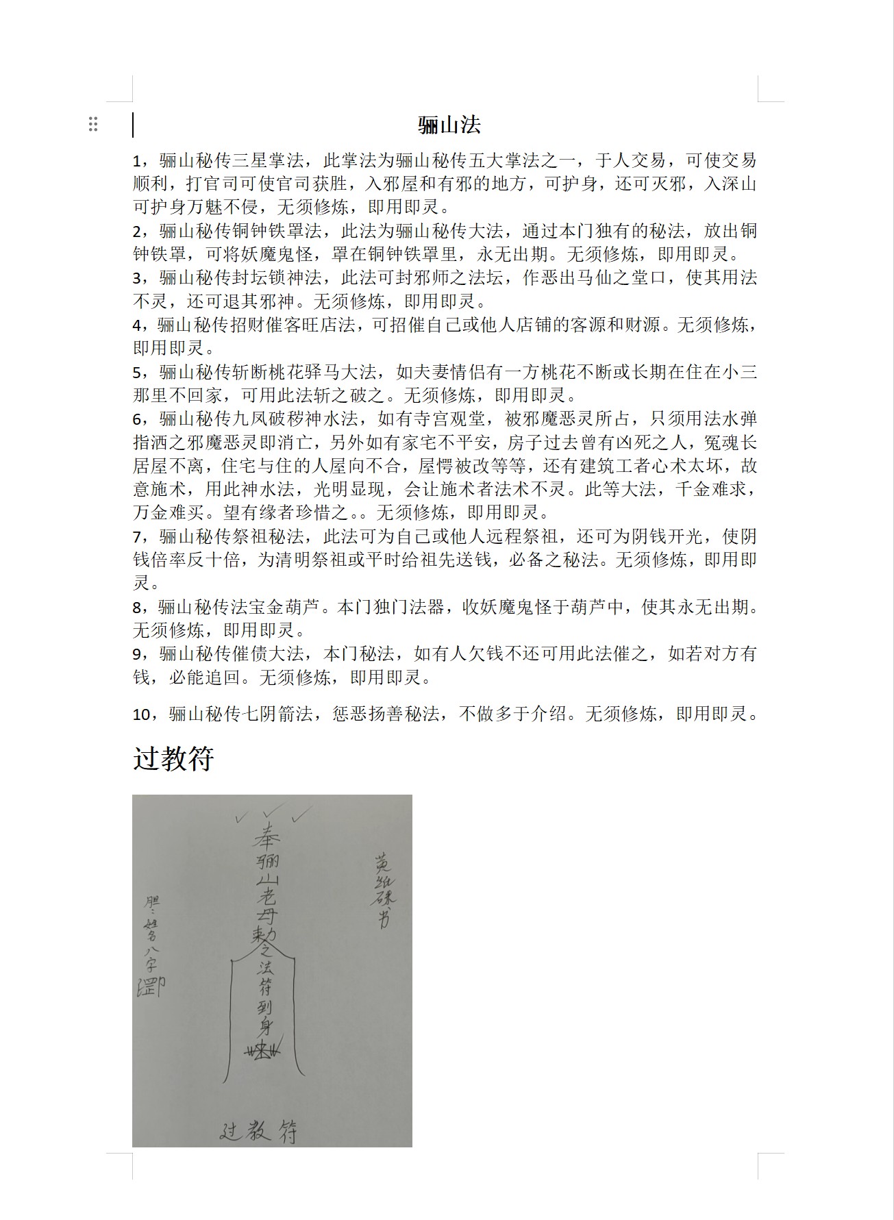 此法为惩恶扬善秘法,不作多余介绍。无需修炼,即用即灵。