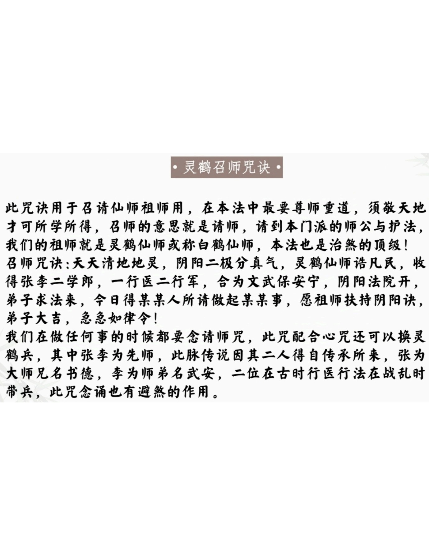 因为鹤可化煞制邪一瞬间,招财催运快速不墨迹!我们都见过南传有个神明叫白鹤仙师,这就是我们这个法脉的祖师,往往几个手诀直接打退一切恶,现在外面的符写着白鹤的都是从我们的阴阳诀中流出去的!