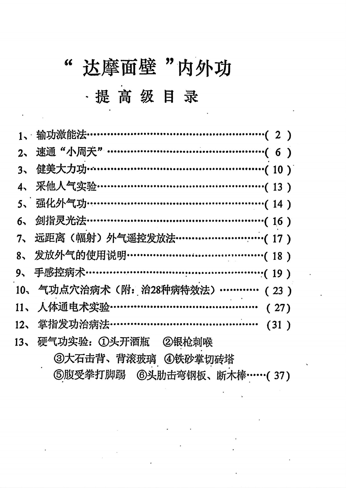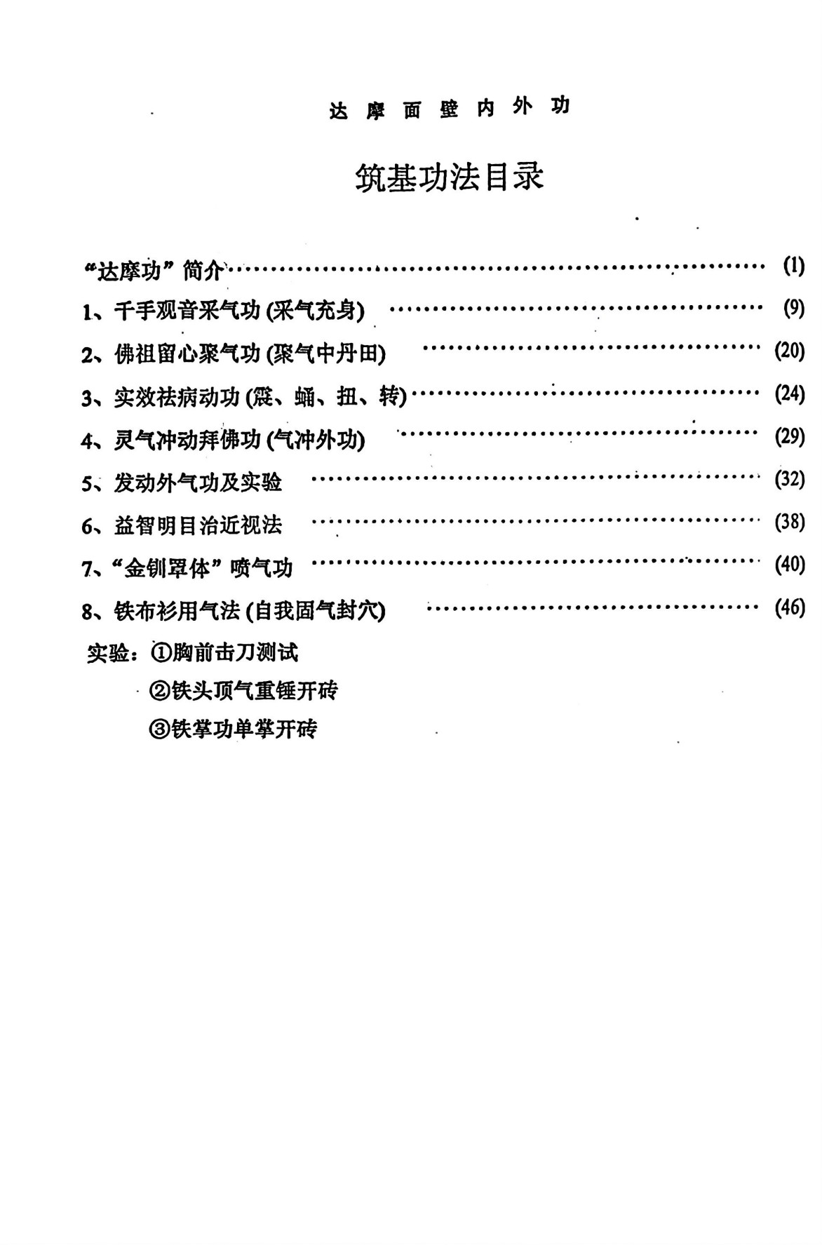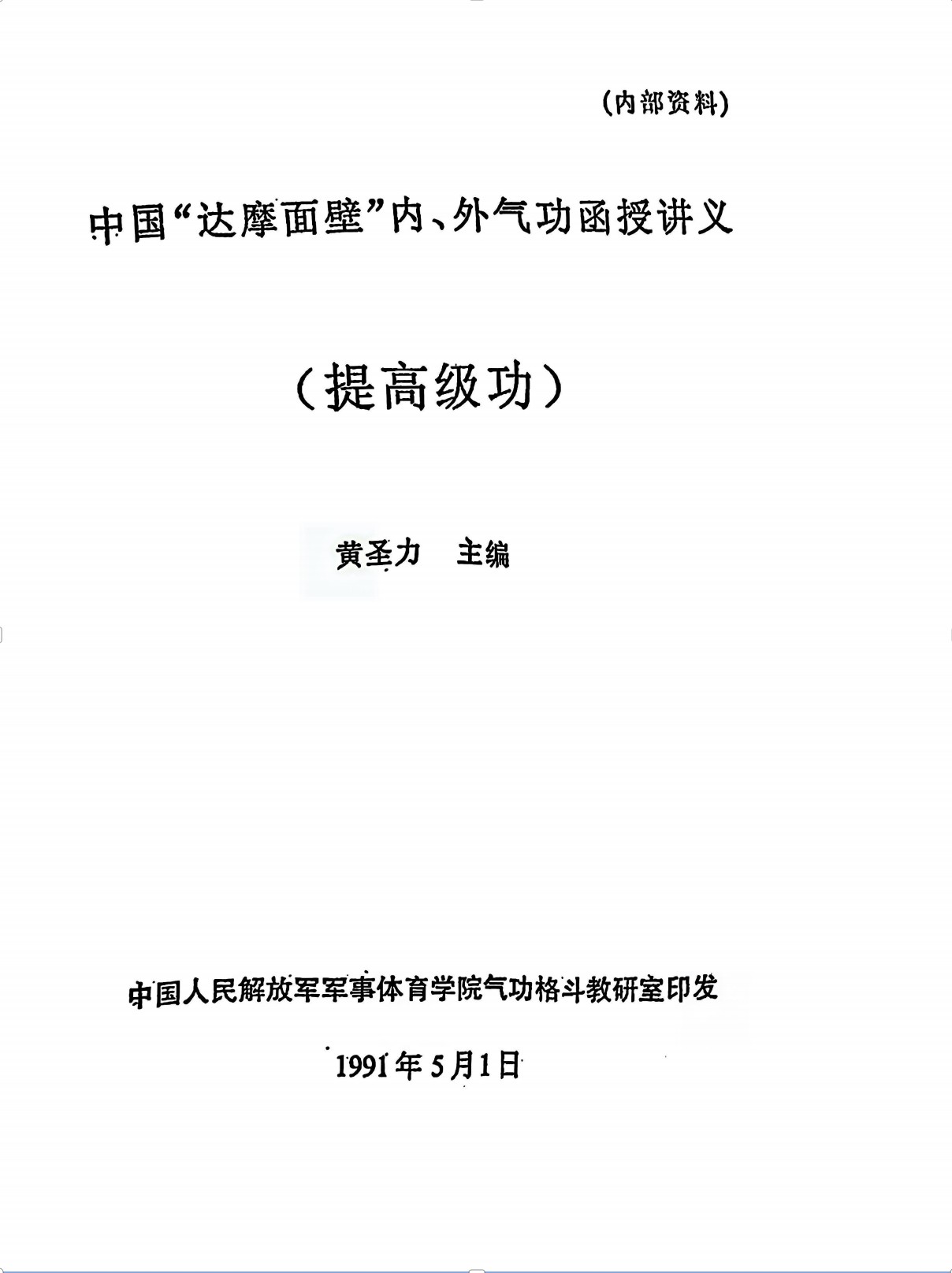 少林昆盛门的黄圣力老师所传少林达摩面壁功共有三套,其中初级功60页(入门级筑基功)和中级功65页(提高级功)为学员所用,高级功44页(高级保密功)乃气功师及教练员专用。