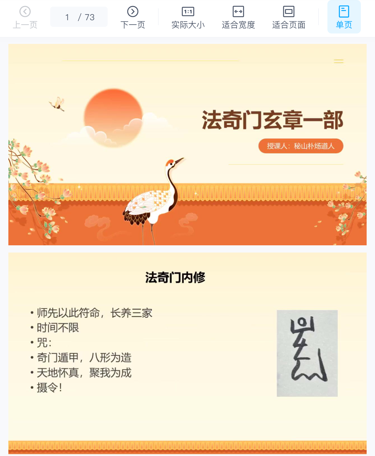 1.奇门心印内修:打坐存秘讳于心,自可通神洞真,亦为本门内修之法