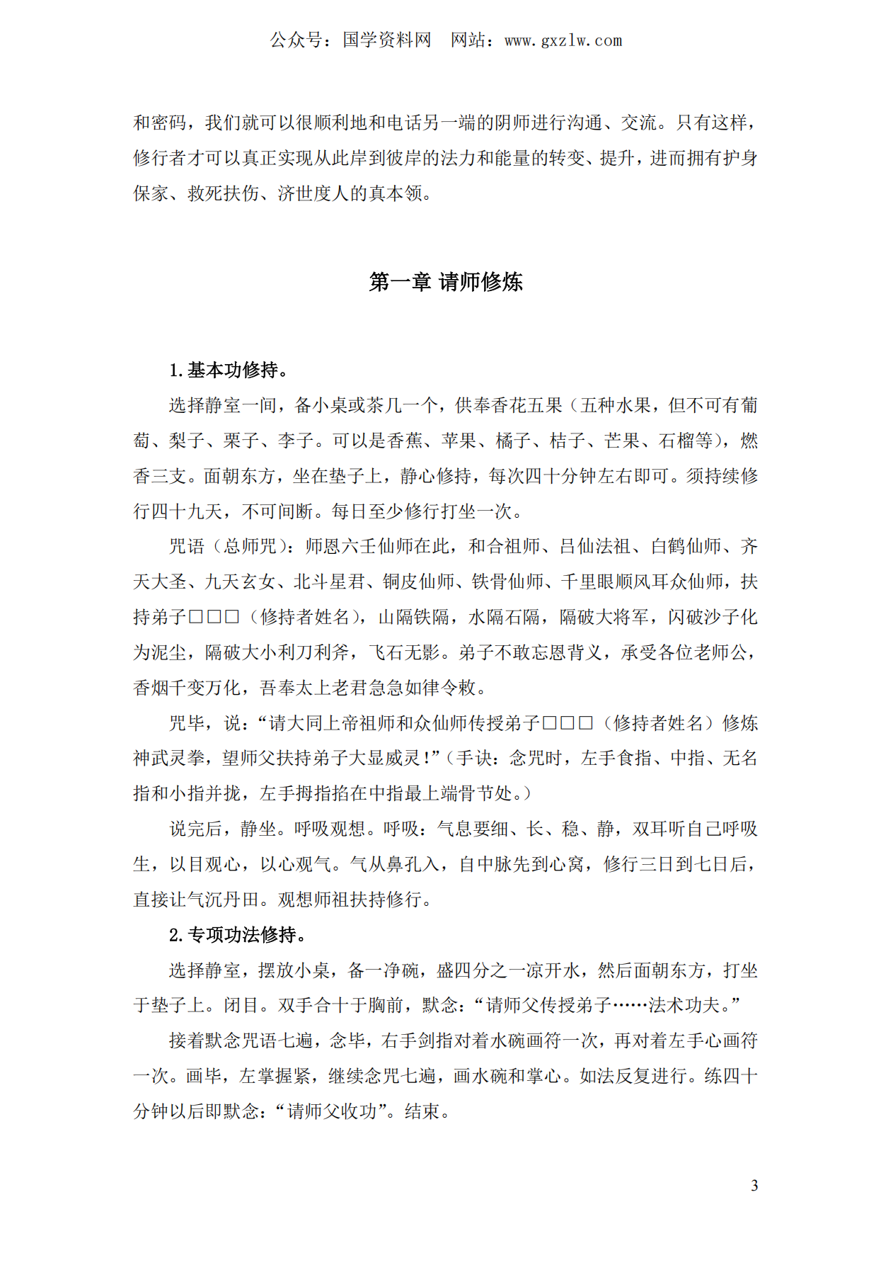 请师修炼,神武灵拳,驱恶法,五雷封禁和五雷解禁法,五雷掌,防打,反打,寄打,神箭术,金蝉脱壳,追赶坏人,远程惩恶,影打,治病救人止血法,治发烧和发冷法,解酒法,化骨法,人缘和睦封口法,人缘促进法,家庭和睦防外遇法,夫妻和合,防盗迷魂法,催失踪者回家,催债法,戒赌法,解法