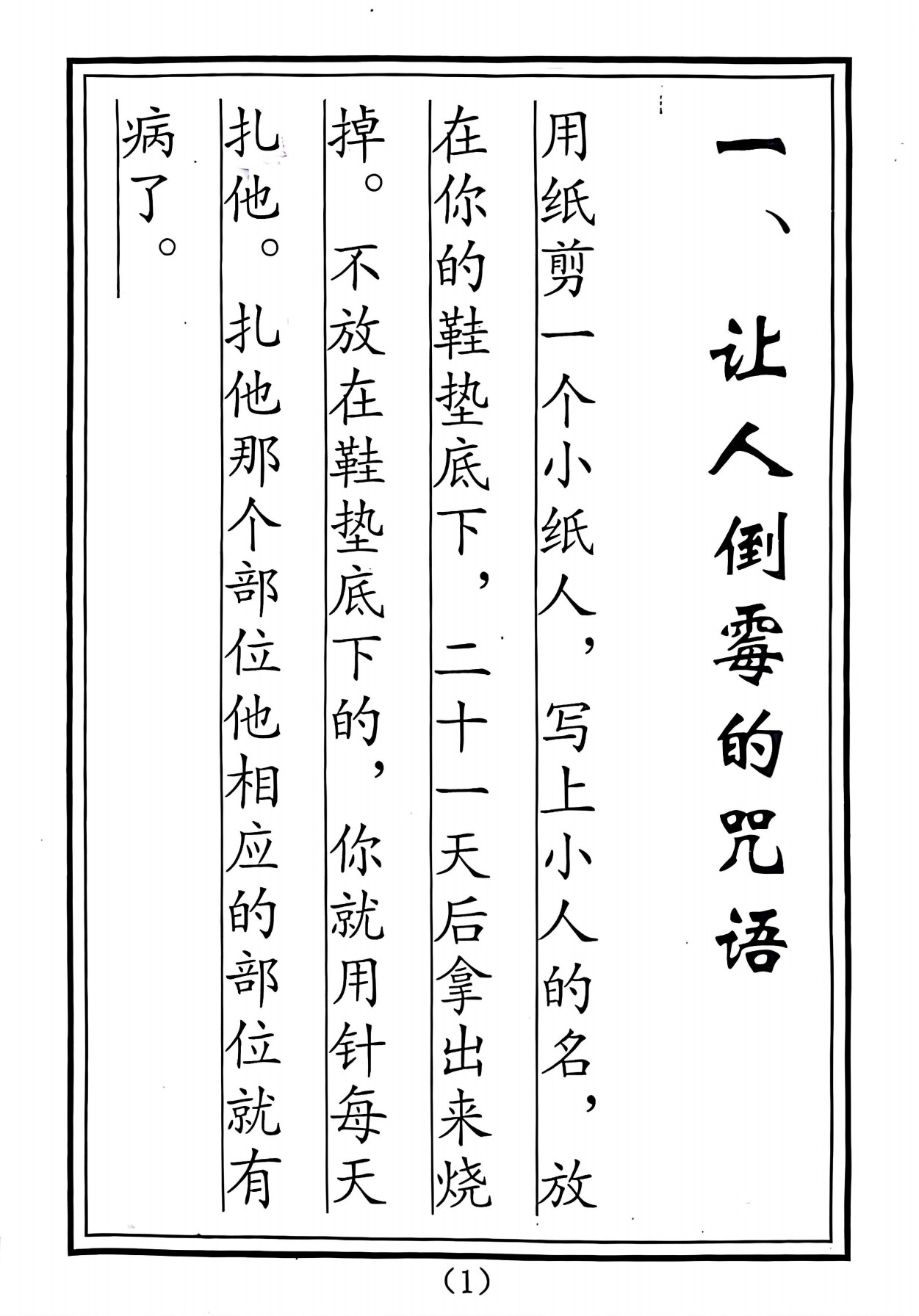 让人倒霉的咒语、破伤诅咒、斩煞气咒语、家庭口角化解法、反诅咒反厌胜咒、家犯白虎化解、凶梦口诀化解、被暗算咒反咒法、衰气上身化解法、遇到凶事化解法、天师护身咒语、百解邪法符咒、护身法咒语、被下咒后破咒术解、解退整人符咒、杀鬼咒语、求子咒语、财神灵符玄坛神咒、解毒法咒语盘、止伤咒语、灾祸化解法、夫妻永好符咒、孩子哭的口诀、止血咒语、被偷东西法咒、自救法化解、家中不清净化解、求生男孩咒、精神病法解、女碰上色狼咒语、遇流氓恶徒咒解、鱼鸡骨梗喉化解、止血咒语、开车平安咒语、防受人变诅咒、受人诅咒化解、夜中牙痛咒语、夜半腹痛咒语、小孩大人做噩梦咒解、顶天柱、夫妇不和咒解、被人欠债符解、是非口舌咒解、求家人平安咒解、家宅闹鬼咒解、伤疼痛符解、风湿关节疼痛咒解、排前树、生意兴隆符咒、防歹徒滋事咒解、打嗝不止符咒、想发财符咒、相思草(又名对脸笑)、小儿受惊吓咒语、小儿夜哭不止咒语、防孩子意外或危险咒语、怕配偶变心咒语、探病或送葬法解等…