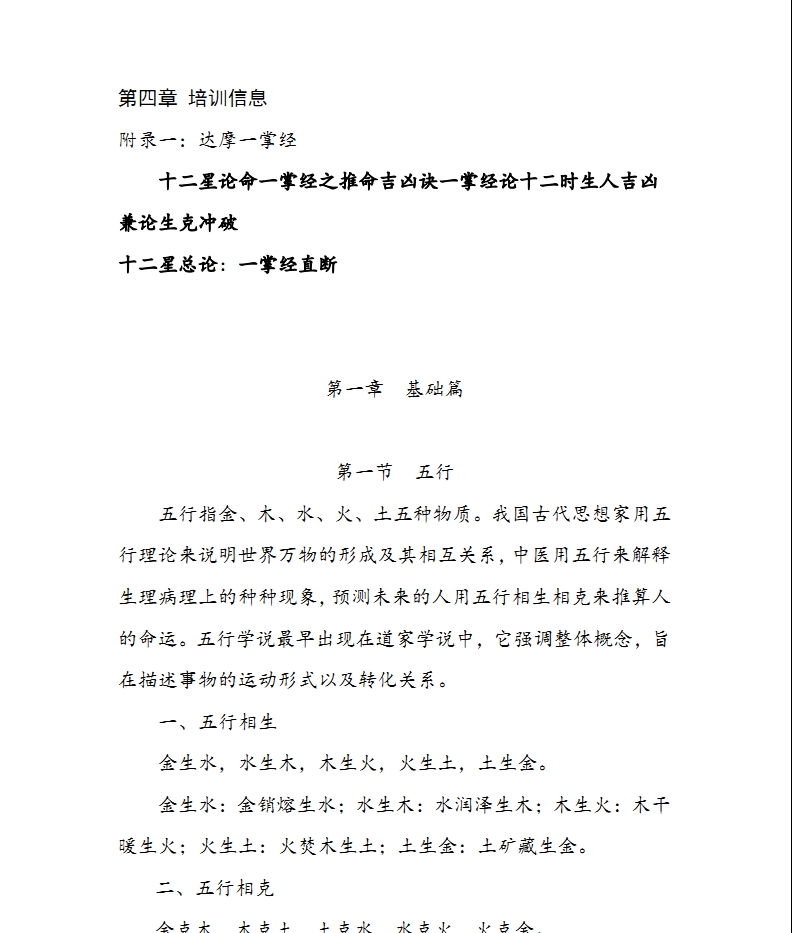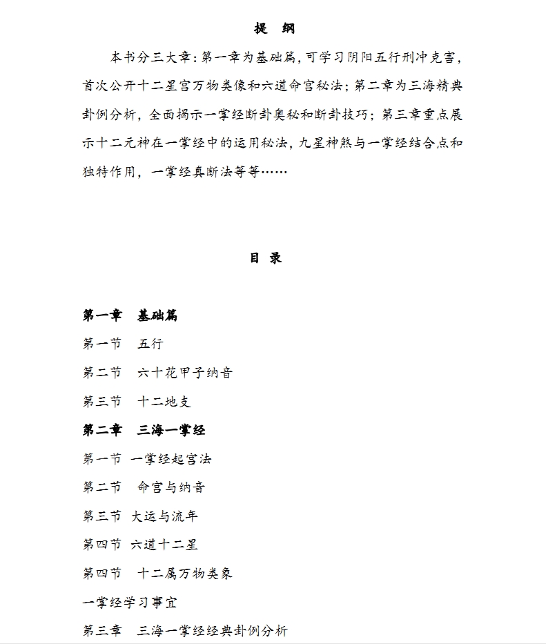 【内容特点】 说起一掌经,好学也易懂,奥妙甚无穷;顾前世、望今生、起卦快、看事精、不用万年历、不用纸和笔、男顺女逆行、地支十二位、天书一掌中;事业与财运、婚姻和家庭、身体连疾病、人际与感情、大运和流年,无一不精通;办事成不成、贵人有没有、和你行不行,出门哪方走、途遇小人否、转目既定情。细看流年运、每月啥事情、每日遇啥人、出入欲何求、了然于心头、求者连说灵、方助你成功;左掌一伸把命断、宗宗件件能说清、无字天书掌心握、立卦快耒显其中。 三海一掌经培训班招生真实可用、一用就灵、一用就准、简单易学、一学就会、不讲门派、只论真实、学后能用、一用就准、准的惊人、断事如神、包教包会、终身答疑。 一掌经论命,方法简单,极易掌握,而且从总的趋势看与命主的实际情况相符。三海一掌经注重实际,不空谈理论,教人以知识和技巧,一学就会,用了就灵。传授一掌经本着简洁明了,不绕圈子。异病轻重风水人情妖魔鬼怪学业前程仕途运势官贵贫贱婚姻财运包罗万象一掌俱全。